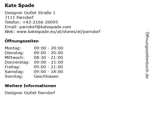 | Öffnungszeiten Kate Spade in Parndorf anzeigen | |