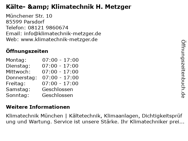 Branchen & Suchbegriffe zu Kälte- & Klimatechnik H. Metzger:h., klimatechnik, kälte, metzger |