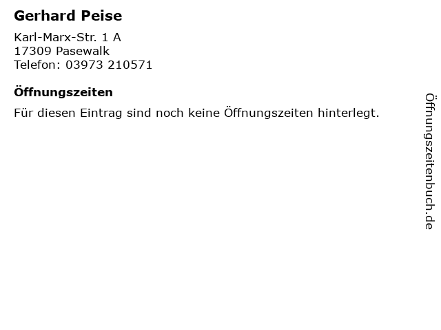 | Öffnungszeiten Gerhard Peise in Pasewalk anzeigen | |