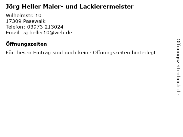 1 Malermeister und Lackierer Inh. Heller Jörg Malermeisterfachbetrieb (Entfernung: 0,07 km) Wilhelmstr. 10, 17309 Pasewalk 6 |