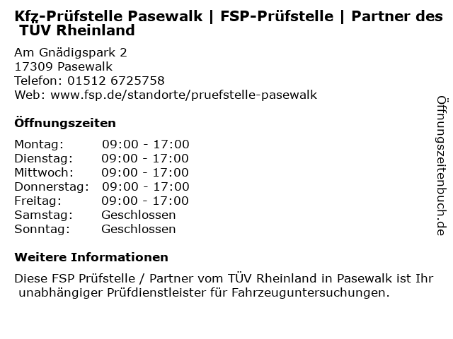 Branchen & Suchbegriffe zu Kfz-Prüfstelle Pasewalk | FSP-Prüfstelle | Partner des TÜV Rheinland:des, fsp, kfz, partner, prüfstelle, rheinland, tüv |