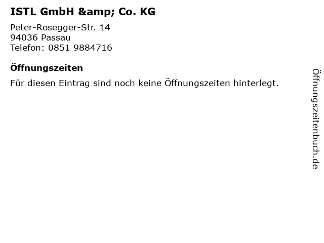 | Öffnungszeiten ISTL GmbH & Co. KG in Passau anzeigen | |