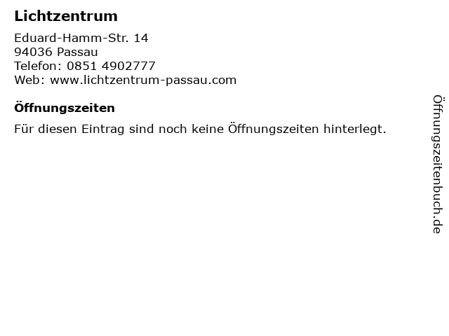 | Öffnungszeiten Lichtzentrum in Passau anzeigen | |