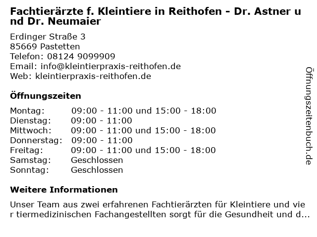 Branchen & Suchbegriffe zu Fachtierärzte f. Kleintiere in Reithofen - Dr. Astner und Dr. Neumaier:astner, dr., f., fachtierärzte, kleintiere, neumaier, reithofen |