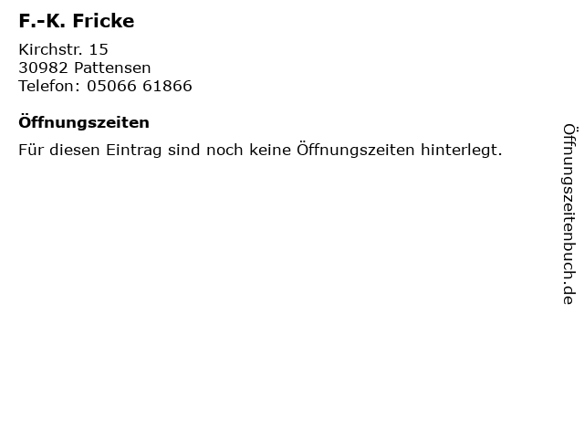| Öffnungszeiten F.-K. Fricke in Pattensen anzeigen | |