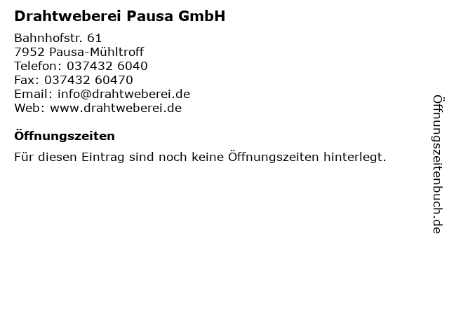 | Drahtweberei Pausa GmbH anrufen | |