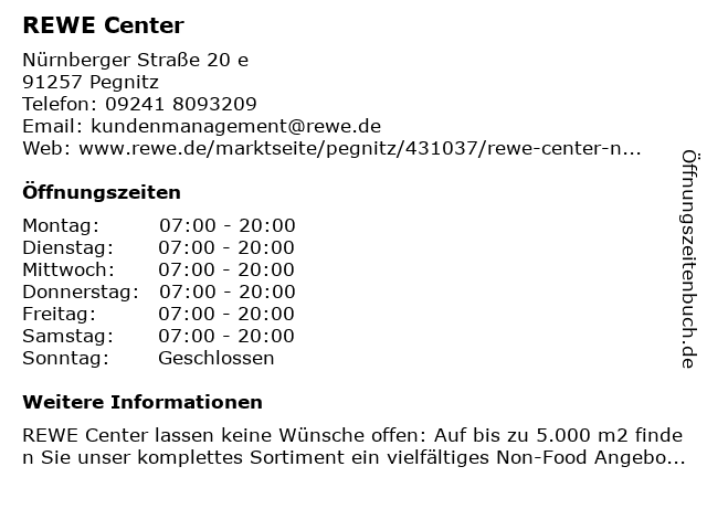 | Öffnungszeiten REWE Center in Pegnitz anzeigen | |