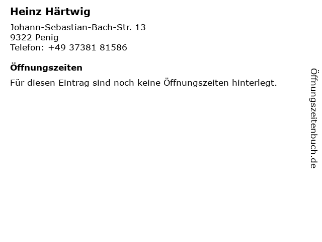 | Öffnungszeiten Heinz Härtwig in Penig anzeigen | |