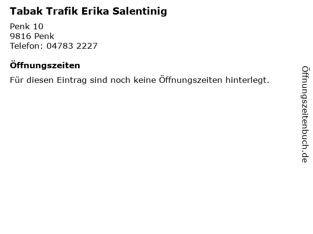 | Adresse Tabak Trafik Erika Salentinig in Penk anzeigen |