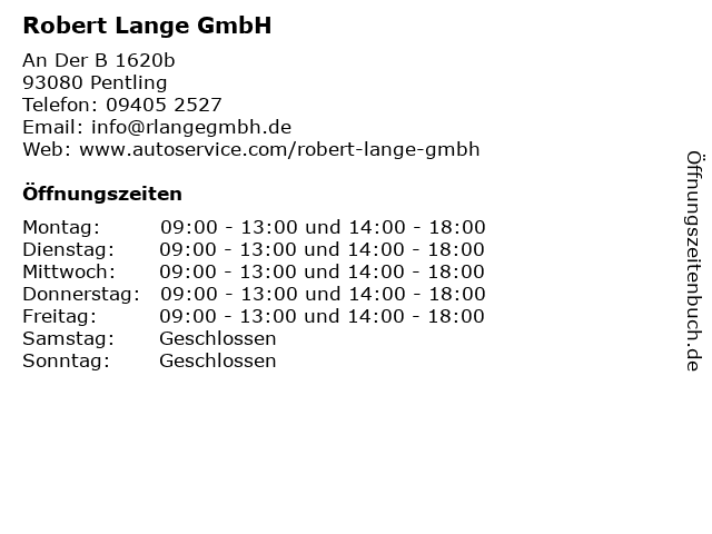 | Öffnungszeiten Robert Lange GmbH in Pentling anzeigen | |