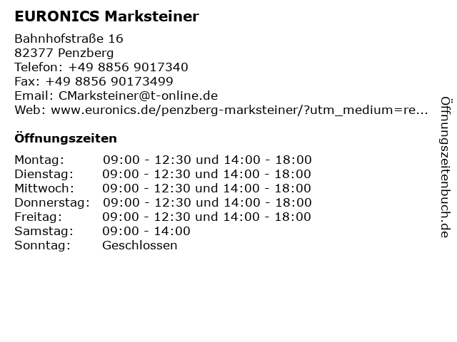 | Öffnungszeiten EURONICS Marksteiner in Penzberg anzeigen | |