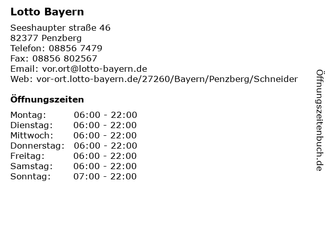 | Öffnungszeiten Lotto Bayern in Penzberg anzeigen | |