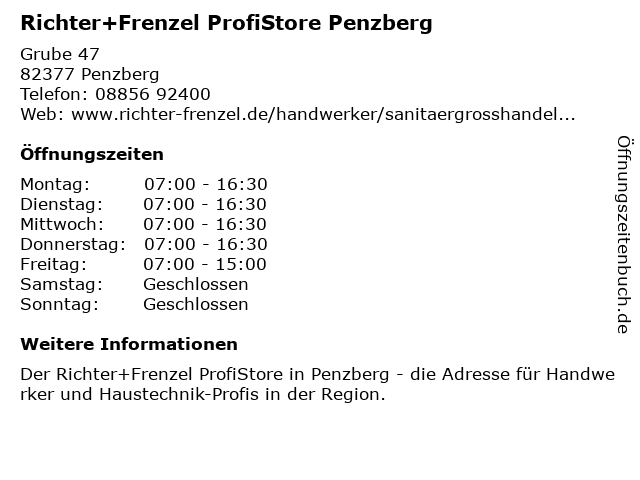 3 Richter+Frenzel ProfiStore Weilheim in Oberbayern (Entfernung: 20,29 km) Holzhofring 31, 82362 Weilheim in Oberbayern 4 Richter+Frenzel ProfiStore Garmisch-Partenkirchen (Entfernung: 35,11 km) Amselstraße 4, 82467 Garmisch-Partenkirchen 6 |