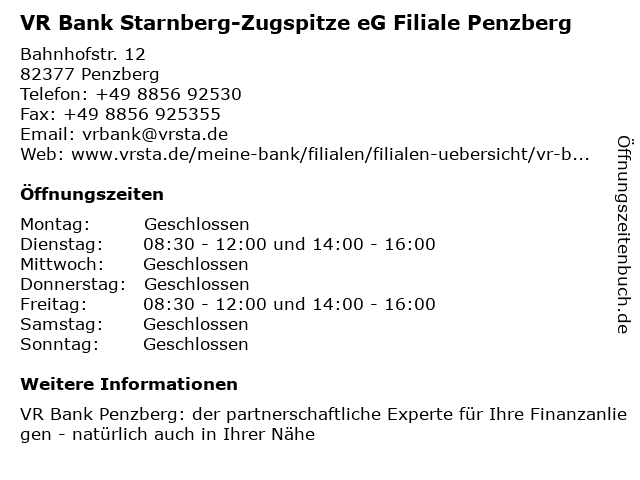 2 VR Bank Starnberg-Herrsching-Landsberg eG - (Geldautomat Penzberg) (Entfernung: 0,00 km) Bahnhofstr. 12, 82377 Penzberg 3 VR Bank Starnberg-Herrsching-Landsberg eG - (Geldautomat Iffeldorf (Entfernung: 4,75 km) Maffeistr. 2, 82393 Iffeldorf 4 VR Bank Starnberg-Herrsching-Landsberg eG - VR Bank Antdorf (Entfernung: 4,81 km) Schleierweg 5, 82387 Antdorf 5 VR Bank Starnberg-Herrsching-Landsberg eG - (Geldautomat Antdorf) (Entfernung: 4,81 km) Schleierweg 5, 82387 Antdorf 6 VR Bank Starnberg-Herrsching-Landsberg eG - (Geldautomat Habach) (Entfernung: 7,44 km) Hofmark 1, 82392 Habach |