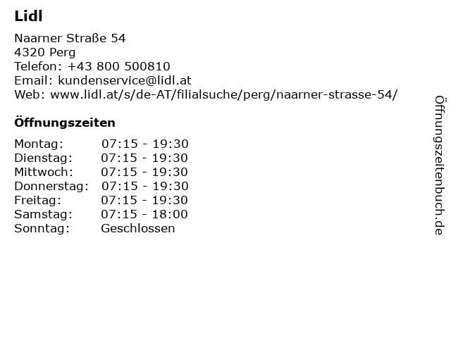 | Öffnungszeiten Lidl in Perg anzeigen | |