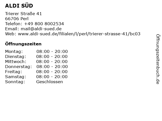 | Öffnungszeiten ALDI SÜD in Perl anzeigen | |