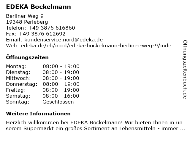Öffnungszeiten EDEKA Bockelmann in Perleberg anzeigen | |