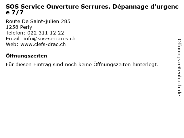 Branchen & Suchbegriffe zu SOS Service Ouverture Serrures. Dépannage d'urgence 7/7:7/7, d'urgence, dépannage, geschäft für tresore & safes, ouverture, serrures., service, sos, tankstelle mit abschleppdienst |