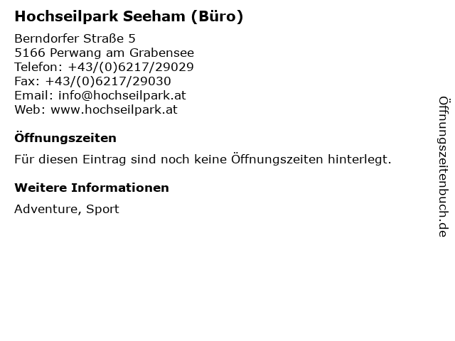 | Hochseilpark Seeham (Büro) anrufen | |