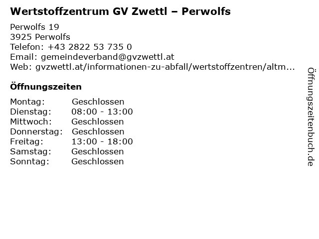 Branchen & Suchbegriffe zu Wertstoffzentrum GV Zwettl – Perwolfs:entsorgung, gv, mistplatz, müll, mülldeponie, perwolfs, wertstoffzentrum, zwettl, – |