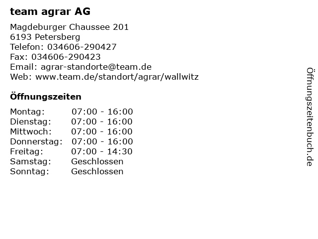 | Öffnungszeiten team agrar AG in Petersberg anzeigen | |