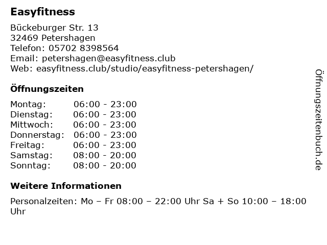 | Öffnungszeiten Easyfitness in Petershagen anzeigen | |