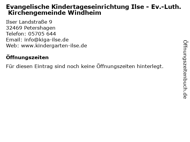 | Evangelische Kindertageseinrichtung Ilse - Ev.-Luth. Kirchengemeinde Windheim anrufen | |