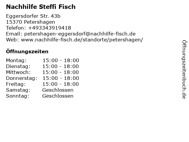 | Öffnungszeiten Nachhilfe Steffi Fisch in Petershagen anzeigen | |