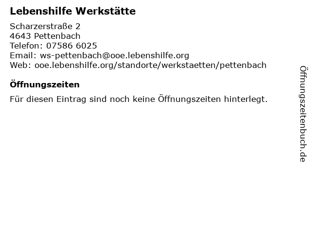 | Öffnungszeiten Lebenshilfe Werkstätte in Pettenbach anzeigen | |