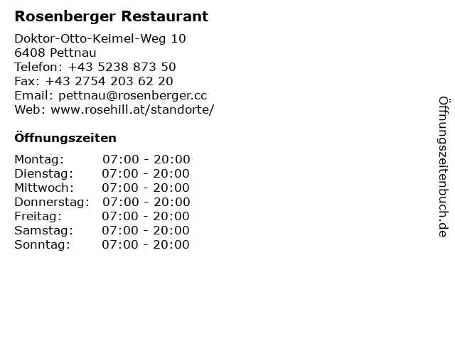| Öffnungszeiten Rosenberger Restaurant in Pettnau anzeigen | |