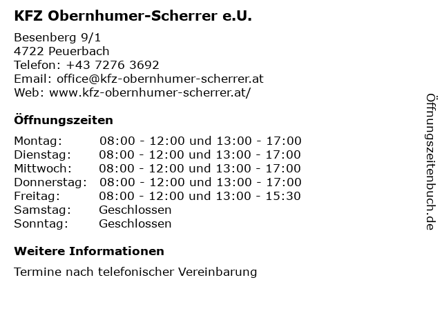 Branchen & Suchbegriffe zu KFZ Obernhumer-Scherrer e.U.:automechaniker, autowerkstatt, dienste, e.u., kfz, obernhumer, scherrer |