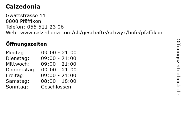 | Öffnungszeiten Calzedonia in Pfäffikon anzeigen | |