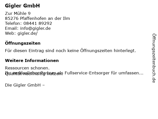 | Adresse Gigler GmbH in Pfaffenhofen an der Ilm anzeigen |