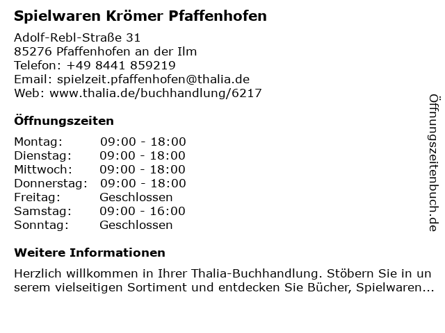 Branchen & Suchbegriffe zu Spielwaren Krömer Pfaffenhofen:bestseller, bookshop, buchhandlung pfaffenhofen, buchladen, bücher, ebooks, krömer, spielwaren, thalia buchhandlung, thalia pfaffenhofen |