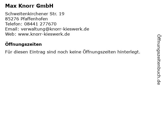 | Öffnungszeiten Max Knorr GmbH in Pfaffenhofen anzeigen | |