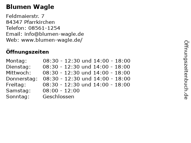 | Öffnungszeiten Blumen Wagle in Pfarrkirchen anzeigen | |