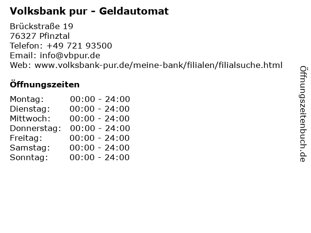 Volksbank pur - Geldautomat in Pfinztal: Telefonnummer, Öffnungszeiten und Adresse