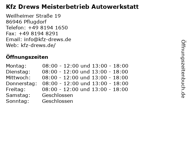 3 Dirk Schwalbach Meisterbetrieb Heizung – Sanitär – Elektro (Entfernung: 6,57 km) Weilheimerstr. 9, 86932 Pürgen 4 Kfz - Meisterbetrieb und Automobilservice Leirich Automobilwerkstatt (Entfernung: 7,63 km) Fichtenstr. 9, 86899 Landsberg am Lech 5 Auto-Service Leiter Autowerkstatt (Entfernung: 14,01 km) Weilheimer Straße 27, 86911 Dießen am Ammersee 6 Betzen's Garage GmbH Kfz-Meisterbetrieb Rauch Autowerkstatt (Entfernung: 14,09 km) Fischerei 41, 86911 Dießen am Ammersee |