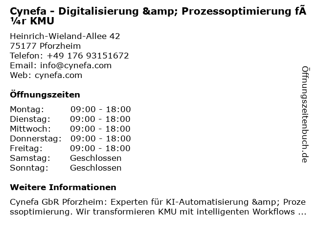 Branchen & Suchbegriffe zu Cynefa - Digitalisierung & Prozessoptimierung für KMU:automatisierung handwerk, bafa förderung digitalisierung, crm integration kmu, cynefa, digitale transformation mittelstand, digitalisierung, digitalisierung dienstleister, digitalisierung kmu, effizienzsteigerung büro, ki beratung, ki-automatisierung, kmu, low-code implementierung, make automatisierung, no-code beratung, prozessautomatisierung pforzheim, prozessoptimierung, prozessoptimierung pforzheim, schnittstellenentwicklung api, strategische digitalberatung, unternehmensberatung pforzheim, workflow optimierung, zapier experte |