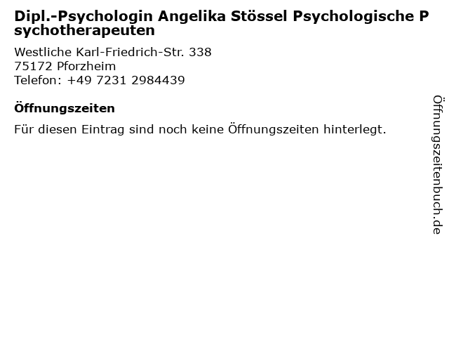 | Dipl.-Psychologin Angelika Stössel Psychologische Psychotherapeuten anrufen | |