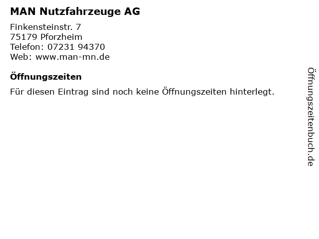 | Öffnungszeiten MAN Nutzfahrzeuge AG in Pforzheim anzeigen | |