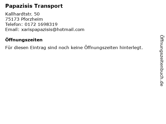 | Öffnungszeiten Papazisis Transport in Pforzheim anzeigen | |