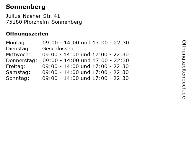 | Öffnungszeiten Sonnenberg in Pforzheim-Sonnenberg anzeigen | |