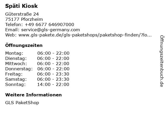 | Öffnungszeiten Späti Kiosk in Pforzheim anzeigen | |