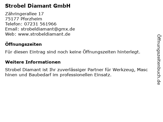 | Öffnungszeiten Strobel Diamant GmbH in Pforzheim anzeigen | |