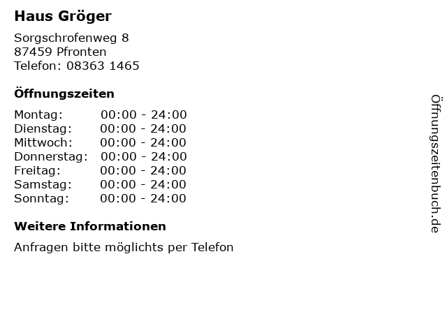 | Öffnungszeiten Haus Gröger in Pfronten anzeigen | |