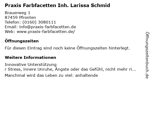 | Praxis Farbfacetten Inh. Larissa Schmid anrufen | |