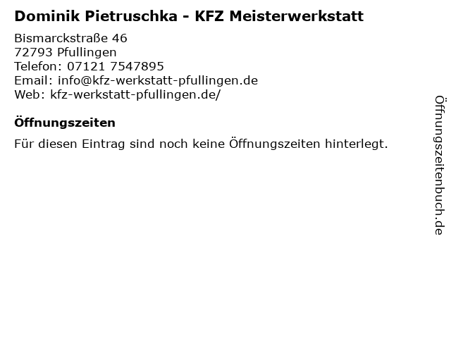 | Dominik Pietruschka - KFZ Meisterwerkstatt anrufen | |