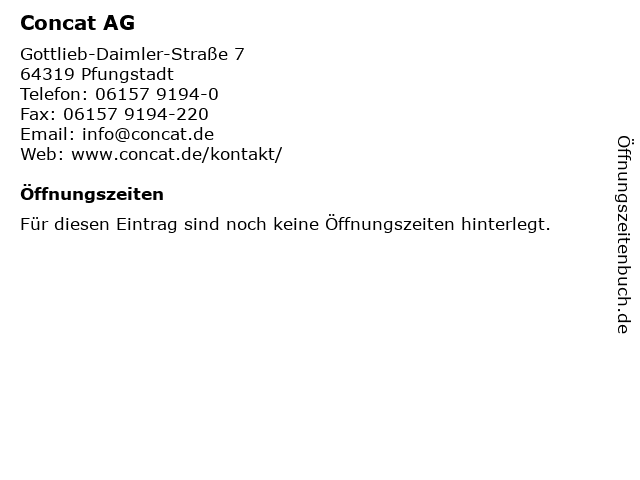 | Öffnungszeiten Concat AG in Pfungstadt anzeigen | |
