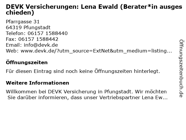 | DEVK Versicherungen: Lena Ewald (Berater*in ausgeschieden) anrufen | |